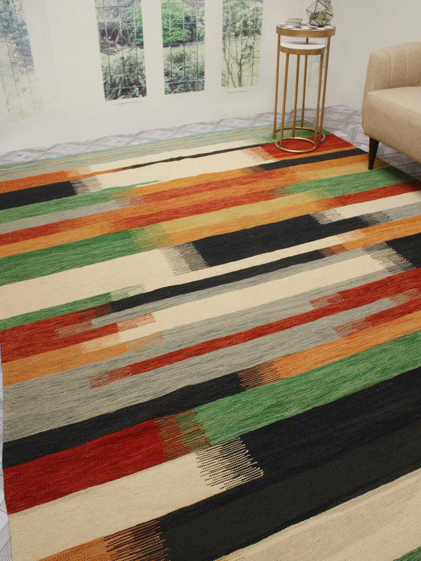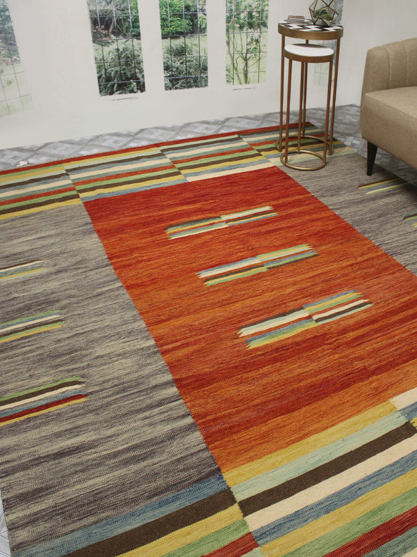 Modern flat woven kilims featuring contemporary and transitional designs hand woven by our skilled artisans in Andkoi, Afghanistan.