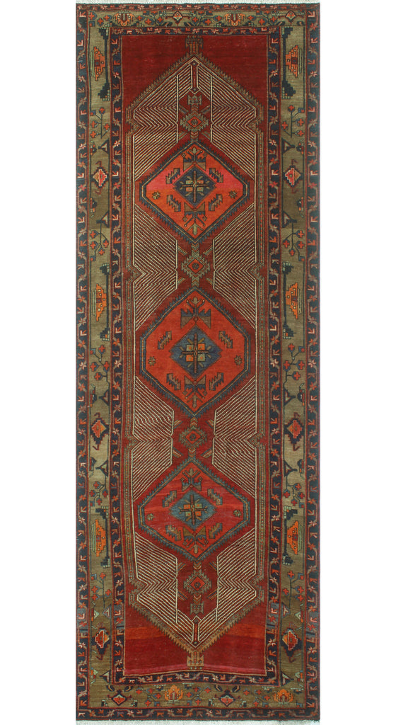 | A genuine one-of-a-kind, this Fine Vintage Distressed Elaine rug pairs a traditional design with pronounced abrash. It was hand-knotted by skilled artisans over the course of a year using centuries old weaving techniques and has the appeal of a prized antique.)